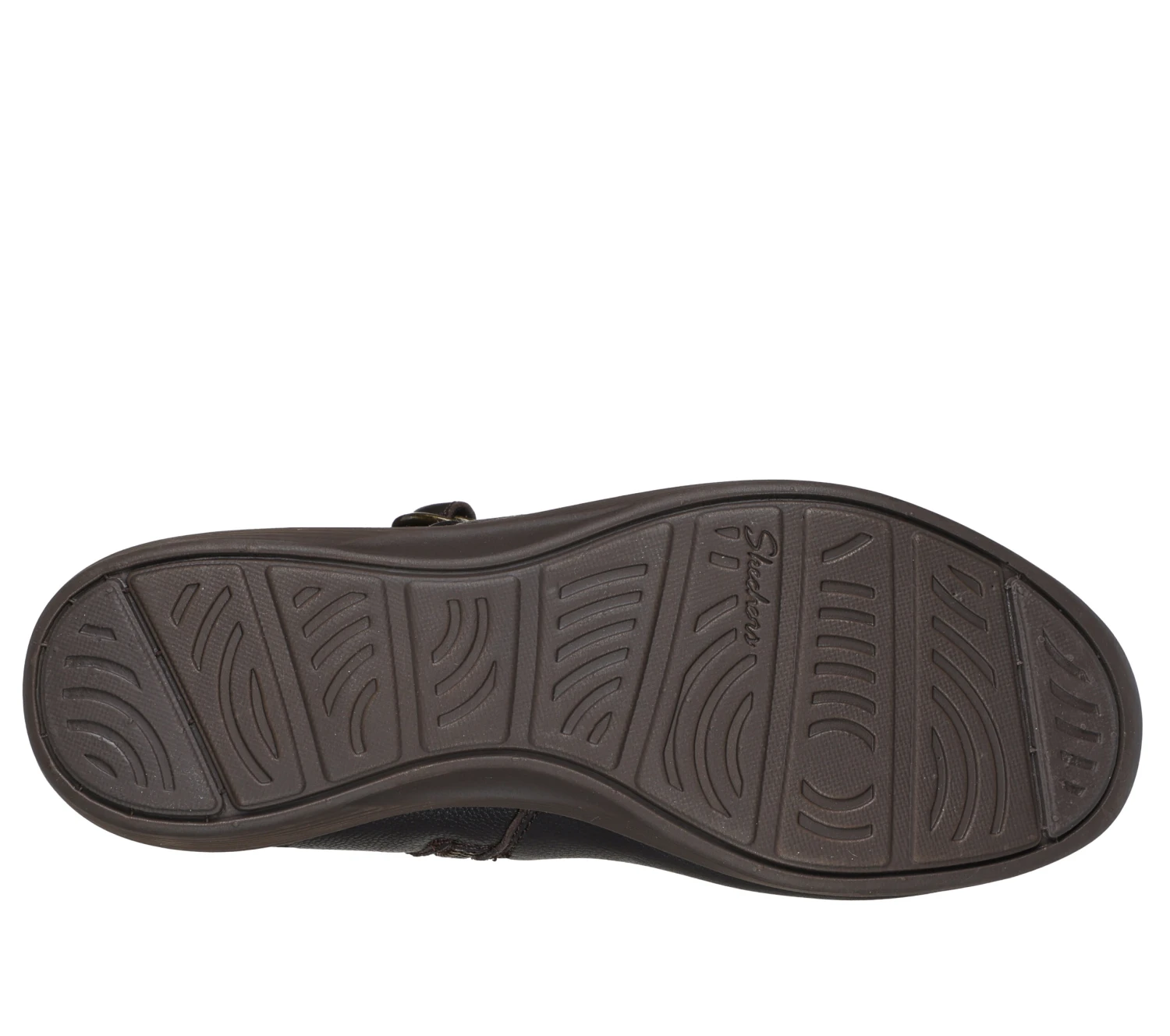 Modern style and chic sensibilities combine in Skechers Arya – Mod Squad. This casual bootie features a leather upper with an O-ring buckle detail, side zip closure and a cushioned Skechers Air-Cooled Memory Foam® comfort insole.