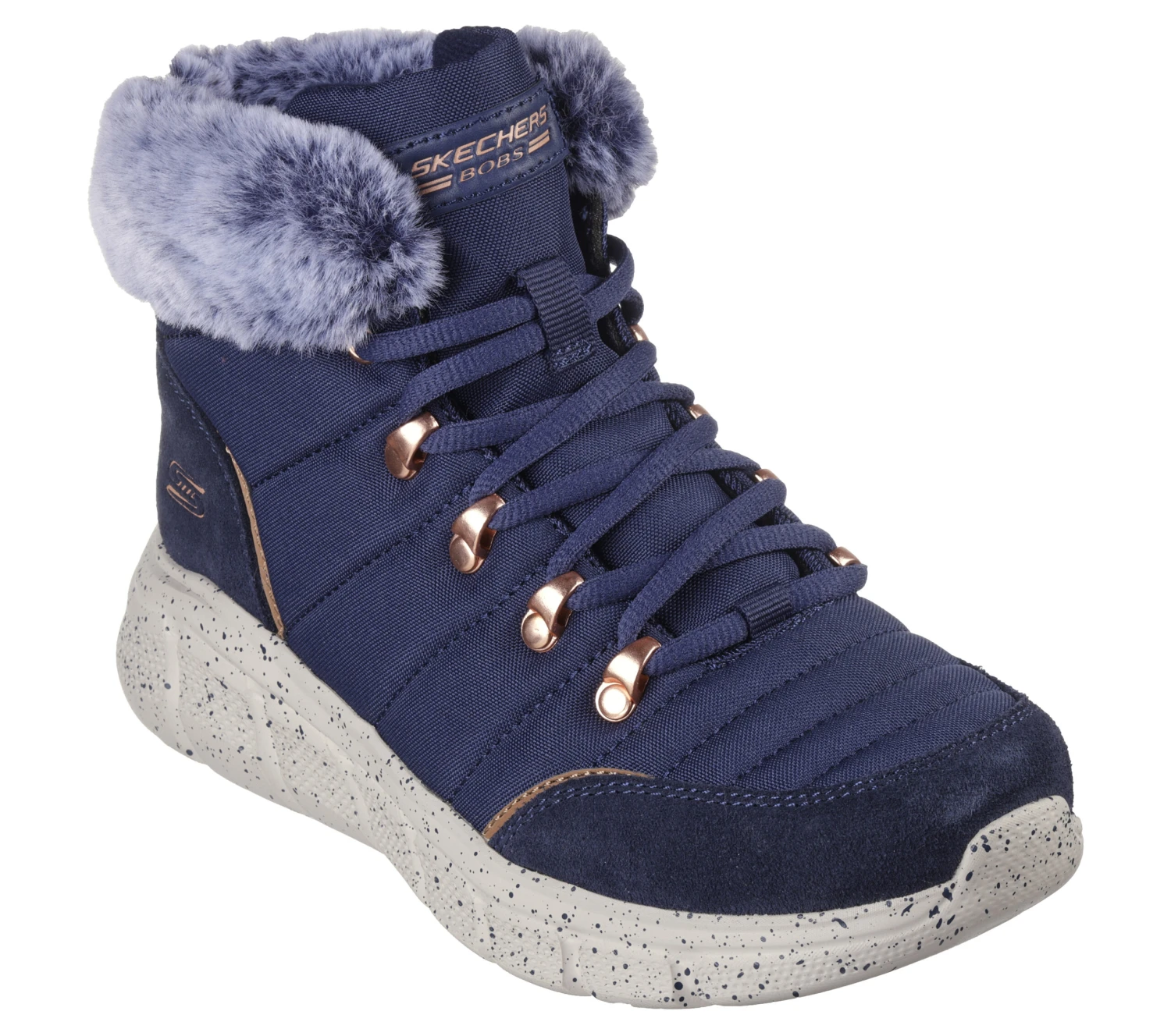 Get winter ready in style and comfort wearing BOBS from Skechers BOBS B Flex – Jolly Darling. This lace-up sneaker boot features a quilted textile upper with a faux-fur collar and a cushioned Skechers Memory Foam insole. For every BOBS purchase, a donation is made to animals in need.