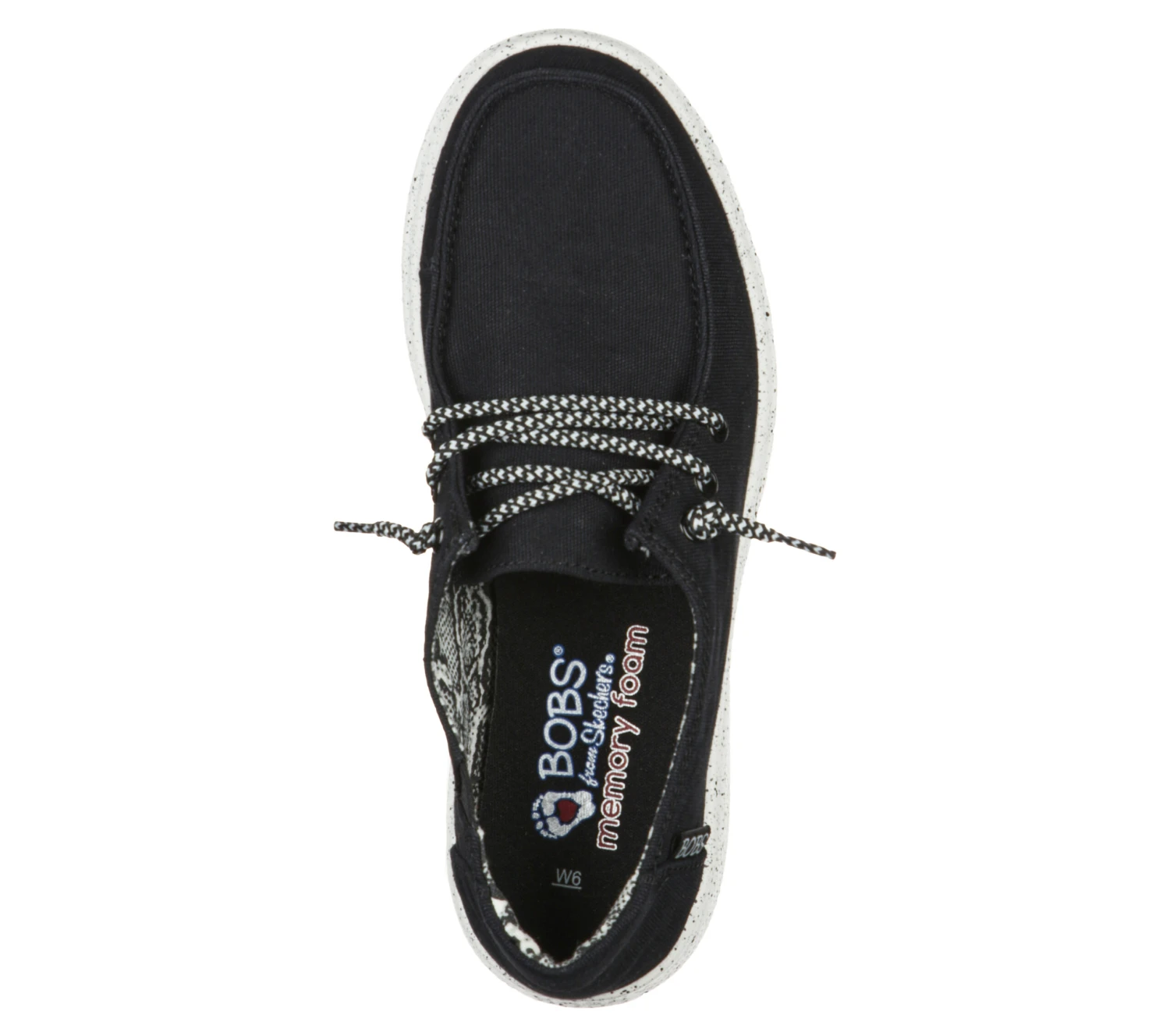 Easy-wearing style and casual comfort meet in BOBS from Skechers Skipper – Tide Pool. This slip-on features a soft canvas upper with decorative laces and a cushioned Skechers Memory Foam insole.