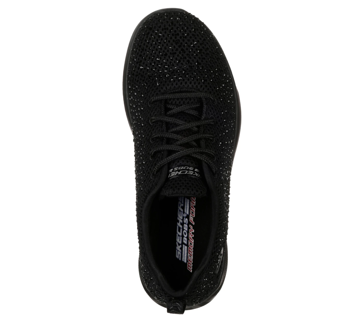 - Rhinestone studded Skech-Knit upper with lace-up front