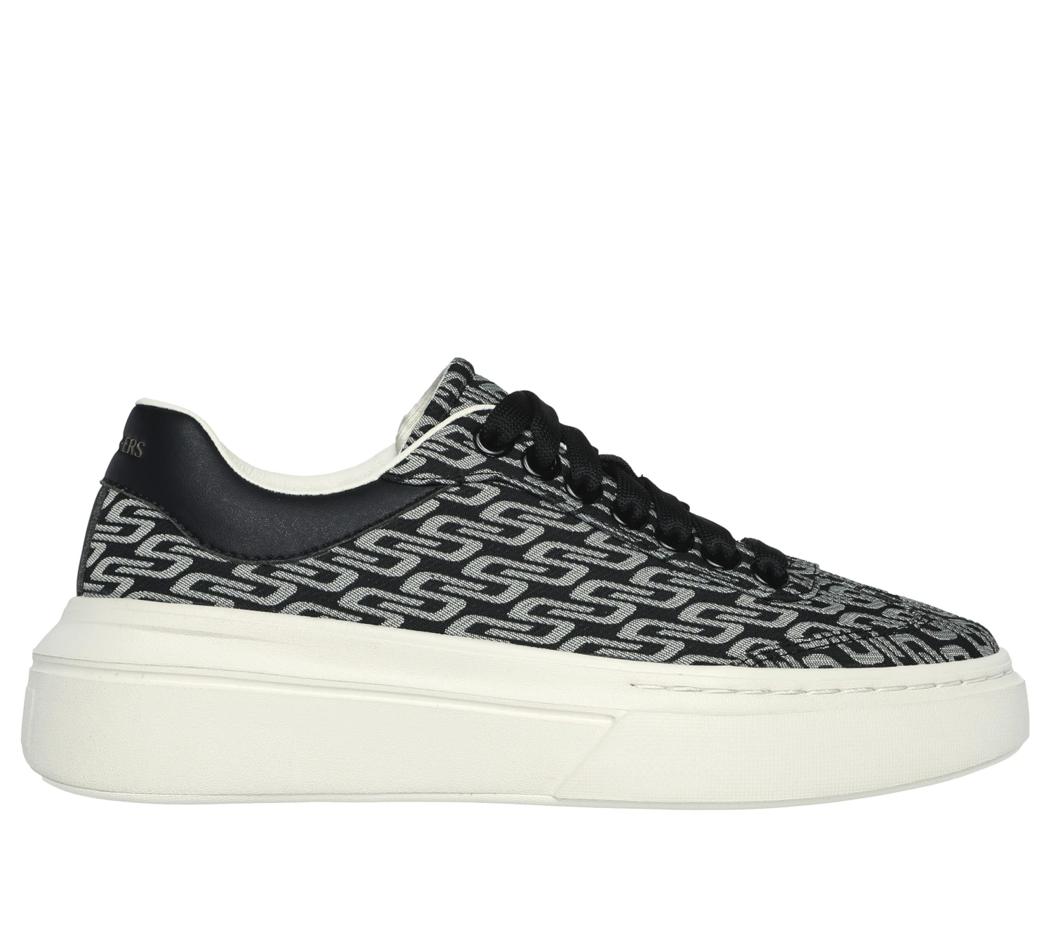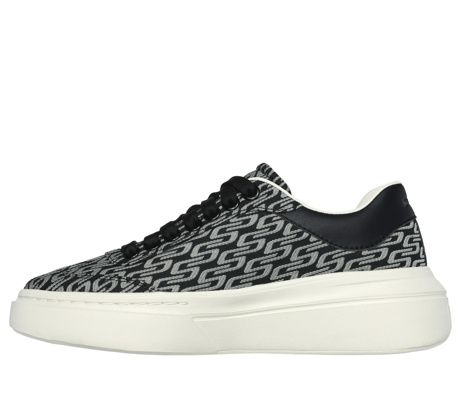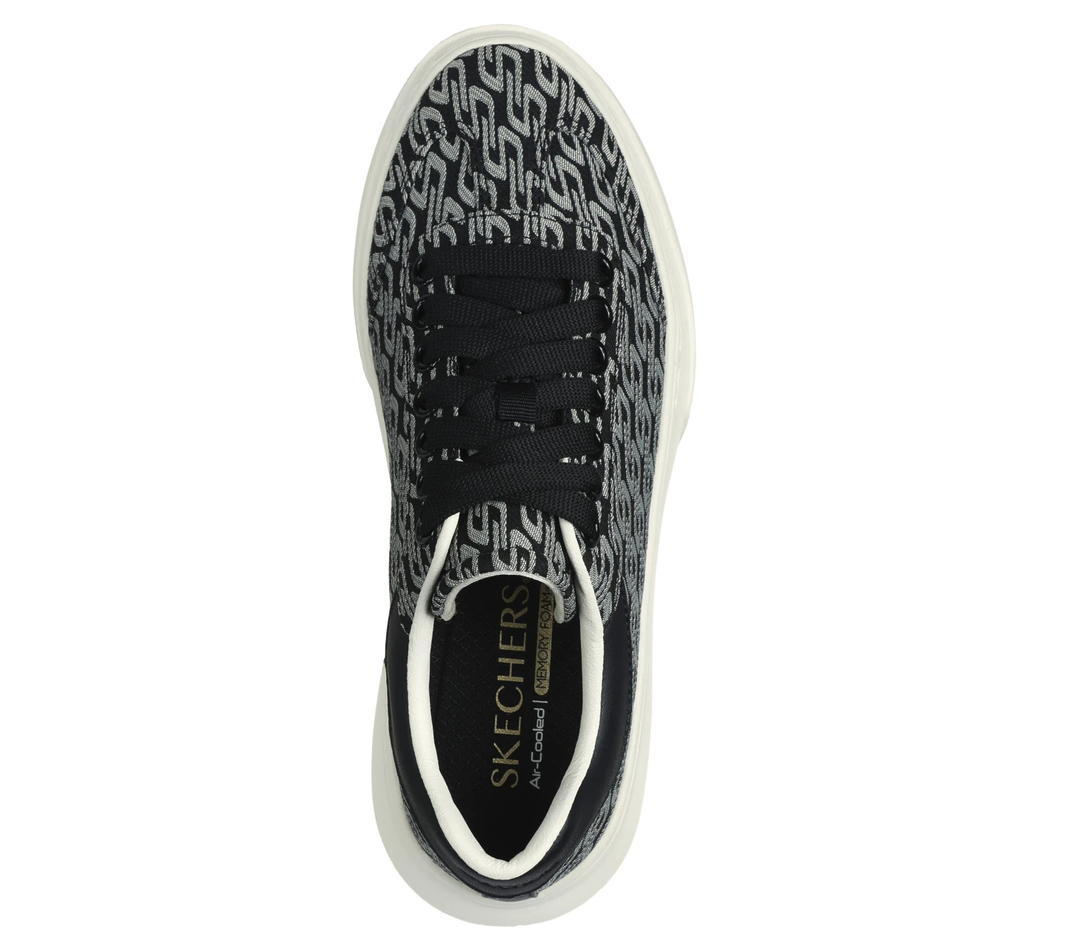 A clean court style gets an elevated update in Skechers Cordova Classic – High Status. This fashion lace-up features a woven jacquard upper in an allover status print with leather heel trim, an updated classic court midsole, and a cushioned Skechers Air-Cooled Memory Foam® insole.