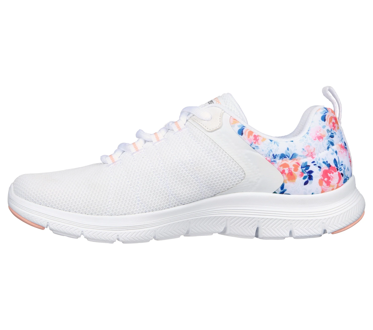 Stop and smell the roses in flexible comfort wearing Skechers Flex Appeal 4.0 – Let It Blossom. This vegan lace-up features a mesh and synthetic upper with floral print heel trim and a cushioned Skechers Air-Cooled Memory Foam® insole.