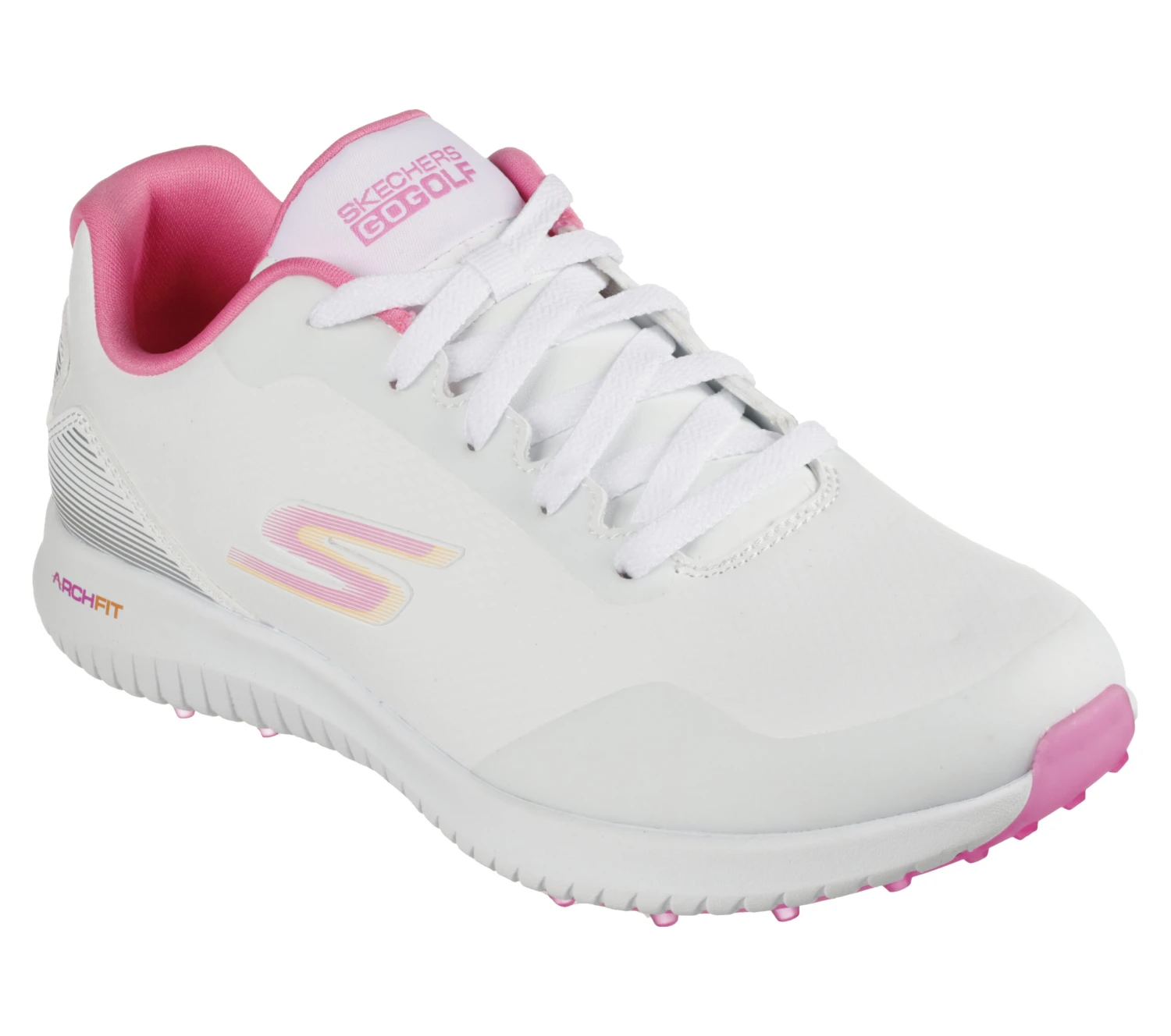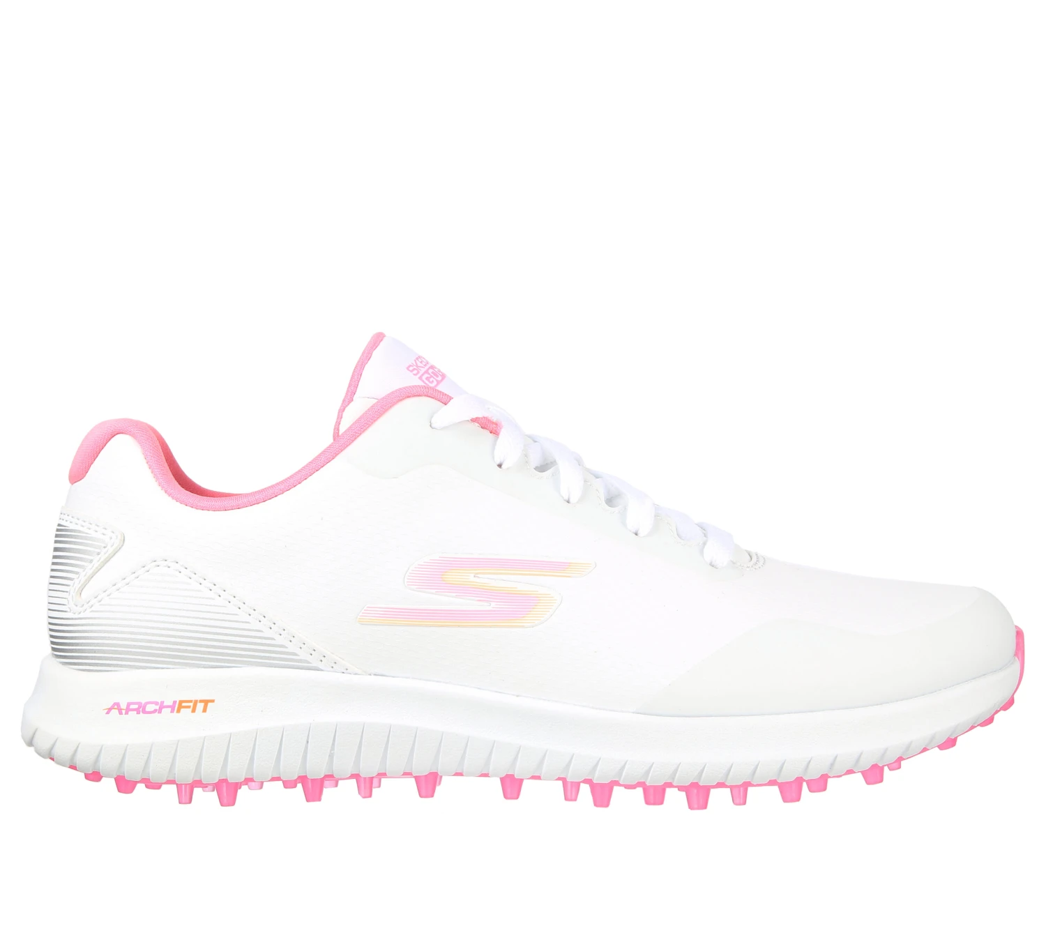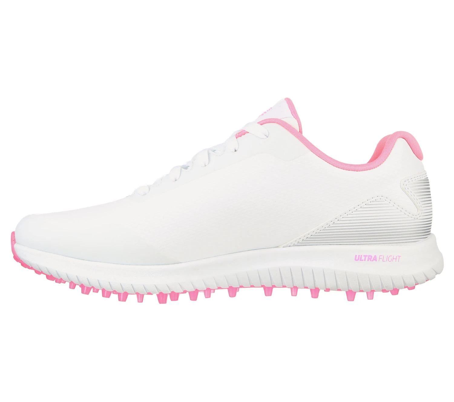 Play your best game in all-day supportive comfort wearing Skechers GO GOLF Max 2. This spikeless waterproof design features a lace-up synthetic upper with a removable Arch Fit® insole and lightweight ULTRA FLIGHT® cushioning.