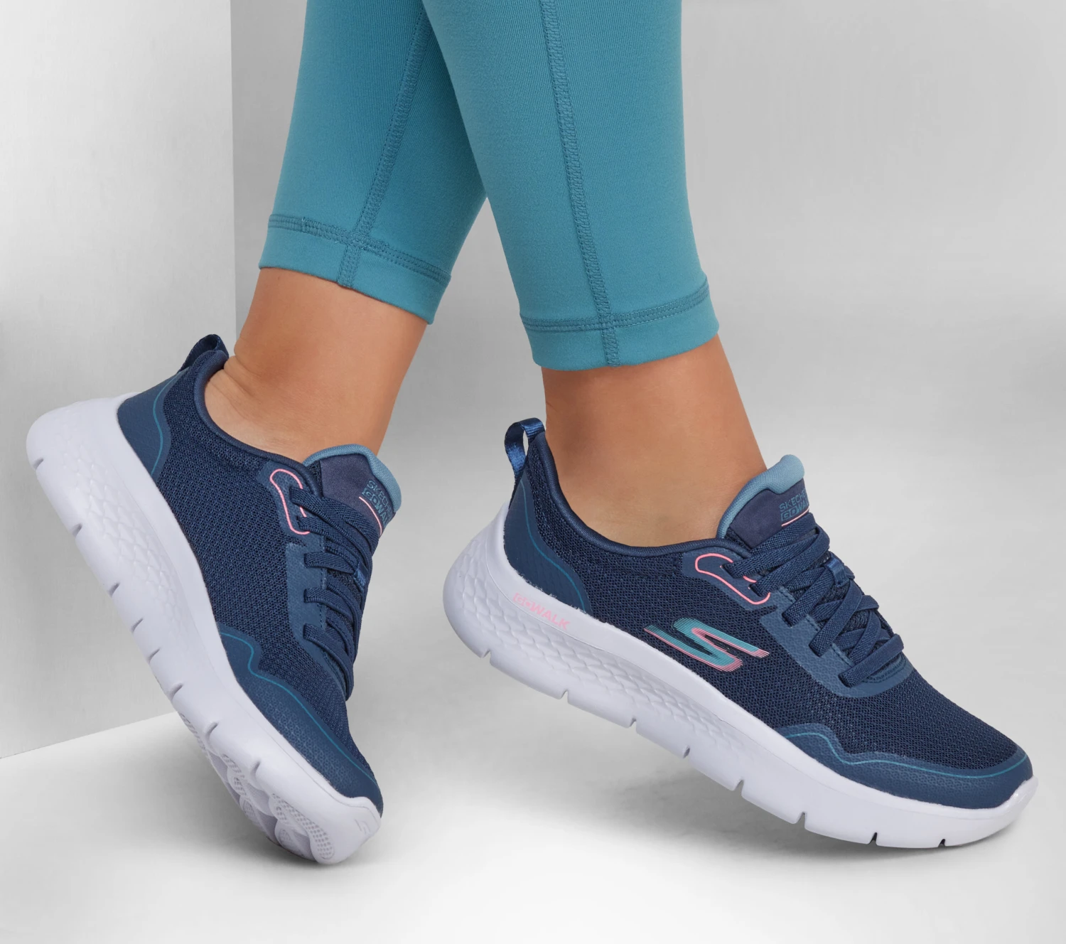 Meet your step goals in superior comfort and flexibility wearing Skechers GO WALK® Flex – Night Galaxy. This vegan athletic lace-up features an engineered mesh upper with a breathable Skechers Air-Cooled Goga Mat insole and lightweight ULTRA GO® cushioning.