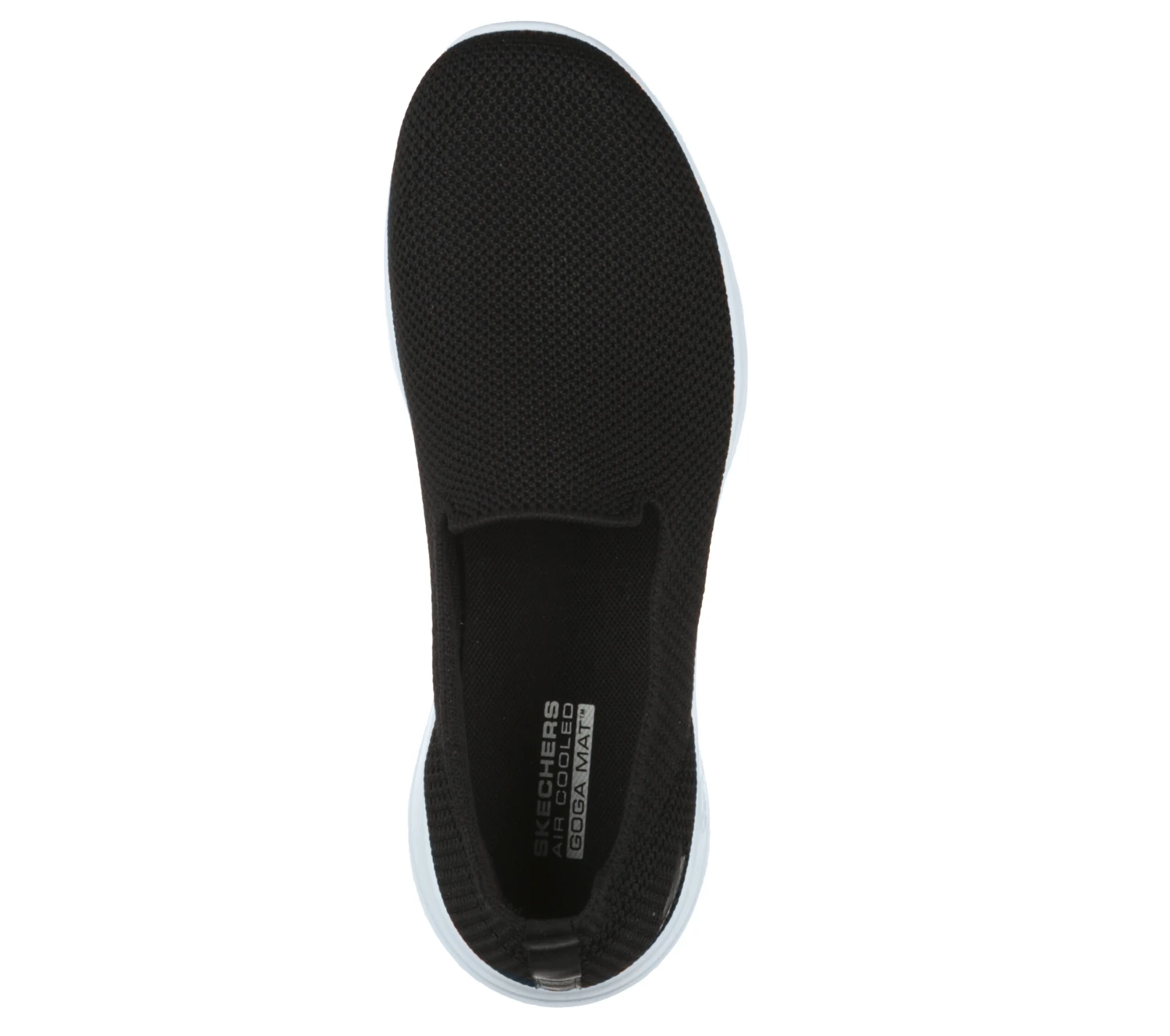 Walk in all-day cushioned comfort wearing Skechers GO WALK Joy – Sensational Day. This laceless fit vegan design features a Stretch-Fit® breathable knit upper with a Skechers Air-Cooled Goga Mat insole and an innovative 5GEN® cushioned midsole.