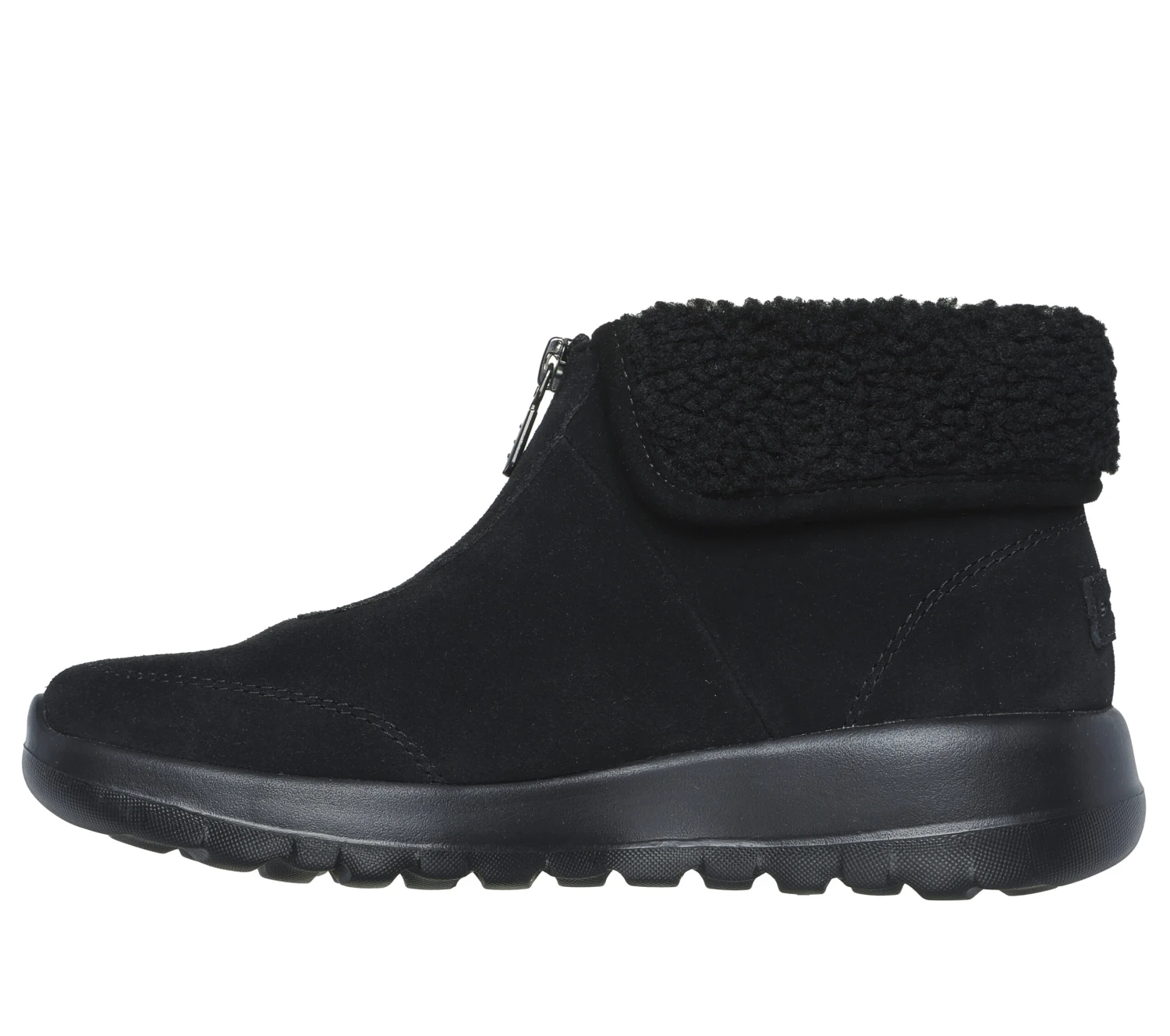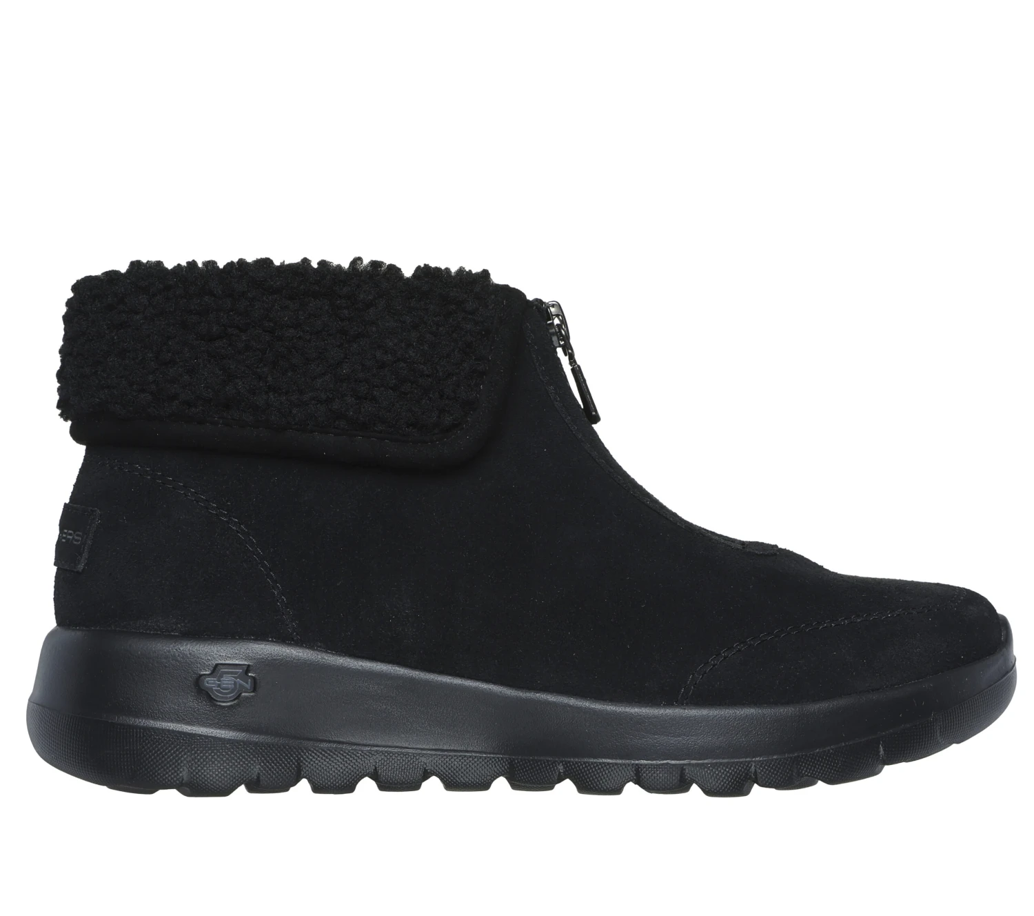 Delight your feet with plush comfort and style wearing Skechers On-the-GO® Joy – Nuzzle Up. This casual cold-weather zip boot features a 3M® Scotchgard® treated suede upper with sherpa lining, a Skechers Air-Cooled Goga Mat™ insole, and a lightweight 5GEN® cushioned midsole.