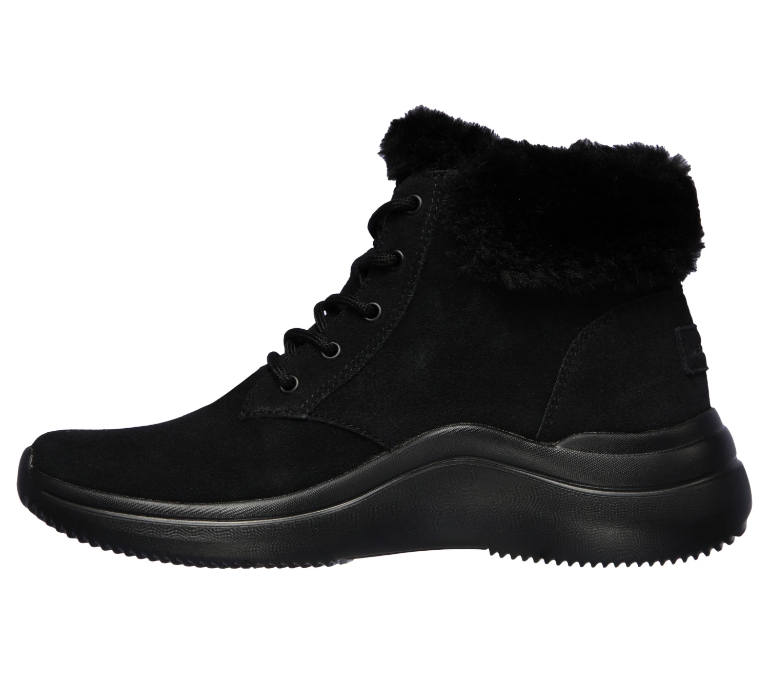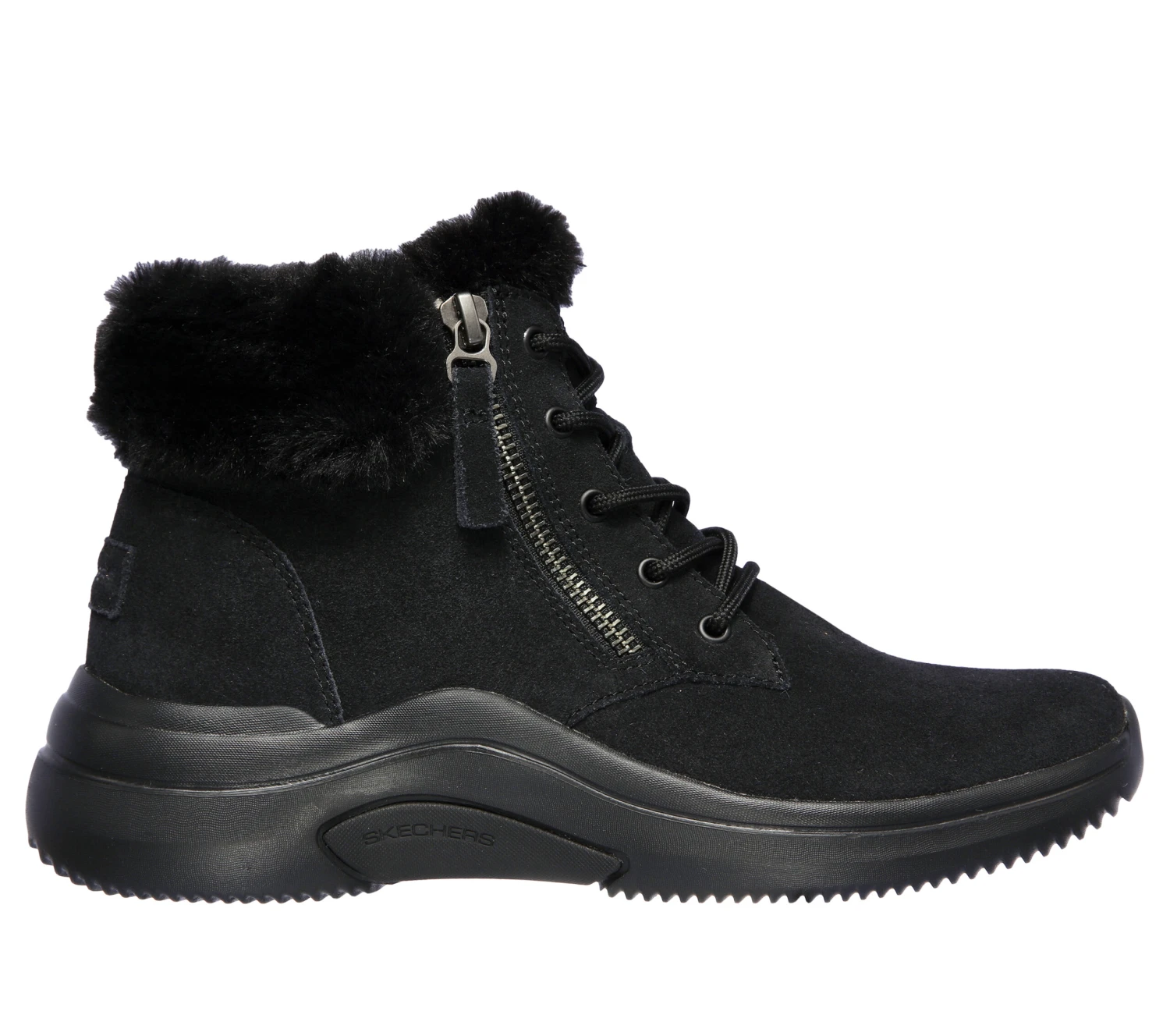Style-up the cooler months in premium quality and comfort wearing Skechers On-the-GO Midtown – Goodnatured. This lace-up cold weather bootie features a 3M® Scotchgard® treated genuine suede leather upper with faux fur collar trim and lining, lateral side zip closure, and a Skechers Air-Cooled Goga Mat® insole.
