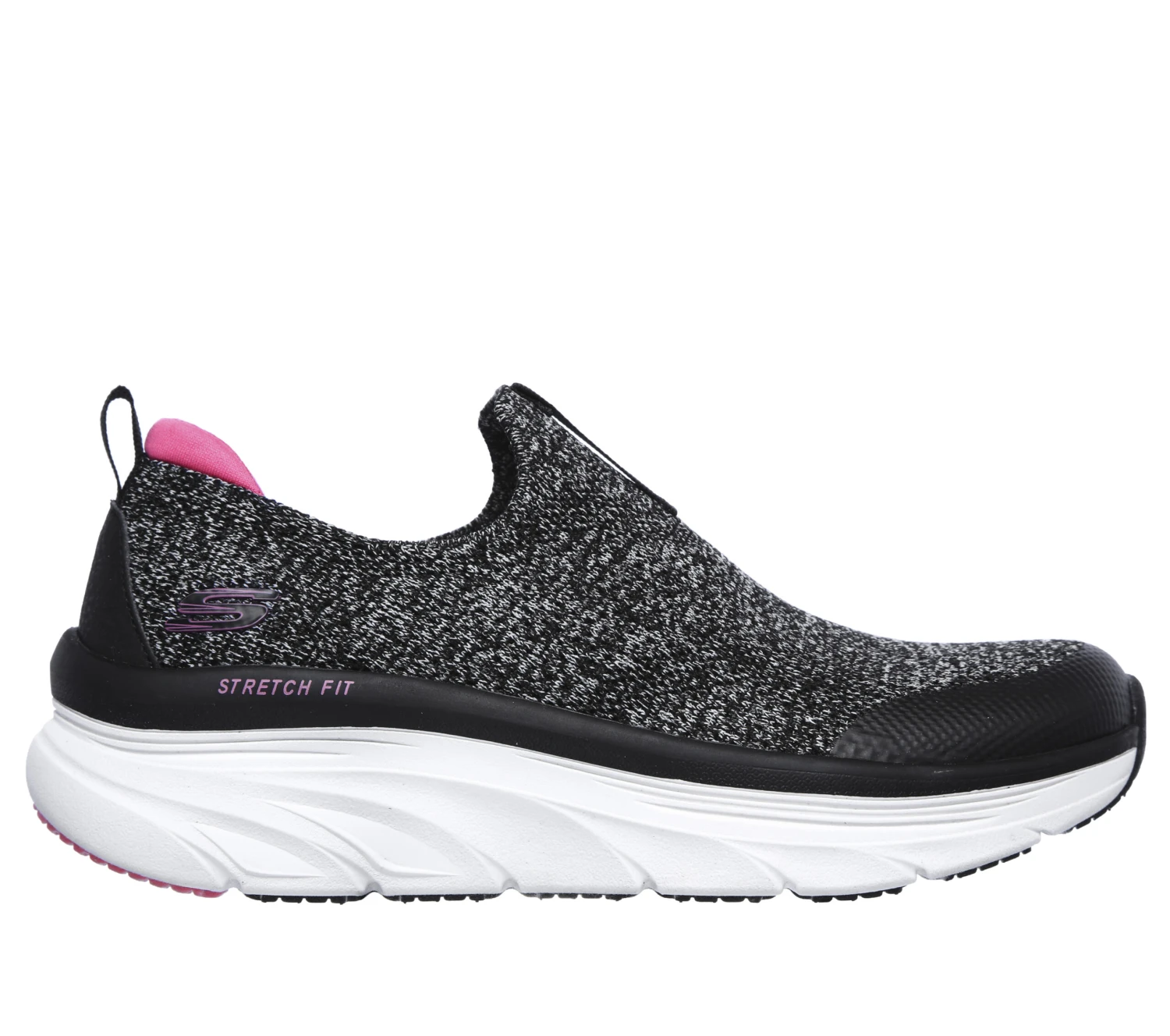 Get a cushioned update in supportive comfort with the Skechers Relaxed Fit: D’Lux Walker – Quick Upgrade shoe. This slip-on Stretch Fit walking sneaker features a soft heathered mesh upper with an Air-Cooled Memory Foam® comfort insole and a well-cushioned Skech-Foam midsole.