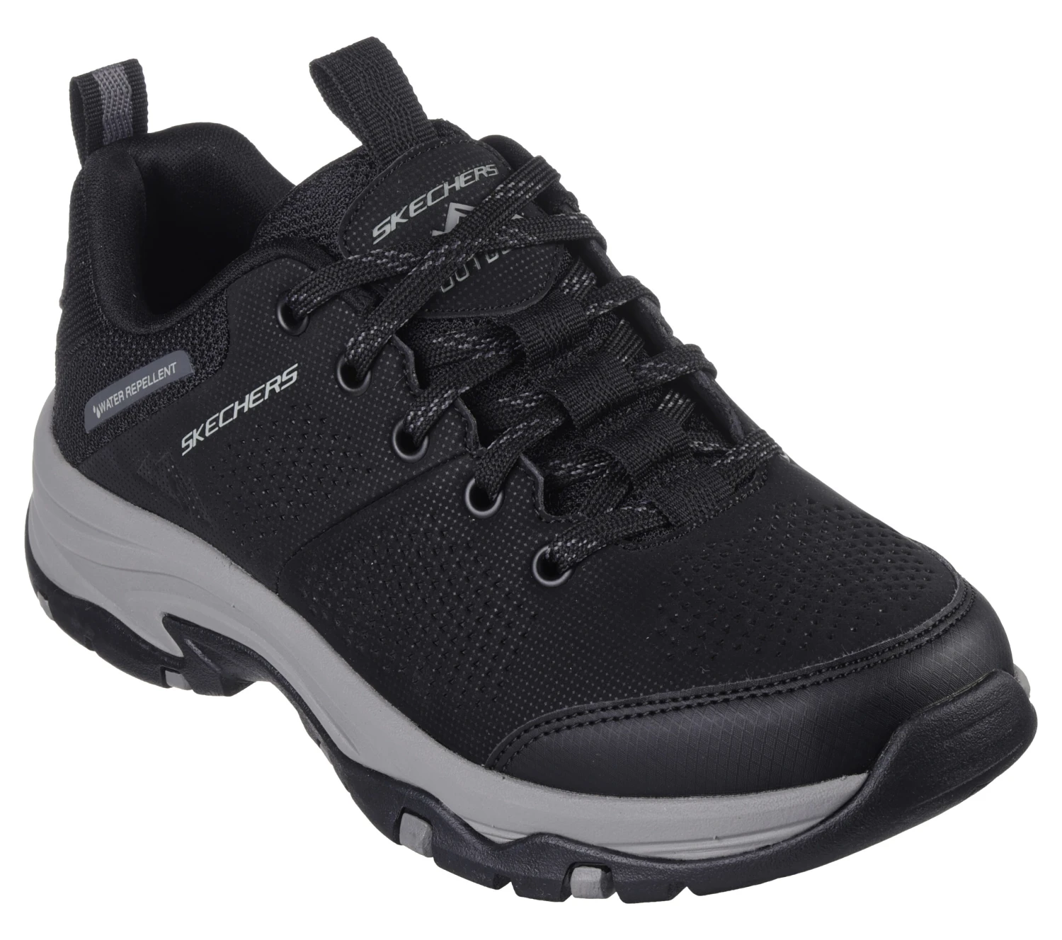 Get ready to explore the great outdoors with Skechers Relaxed Fit®: Trego – Trail Destiny. This lace-up casual trail design features a water-repellent synthetic and mesh upper with a Skechers Air-Cooled Memory Foam® insole.