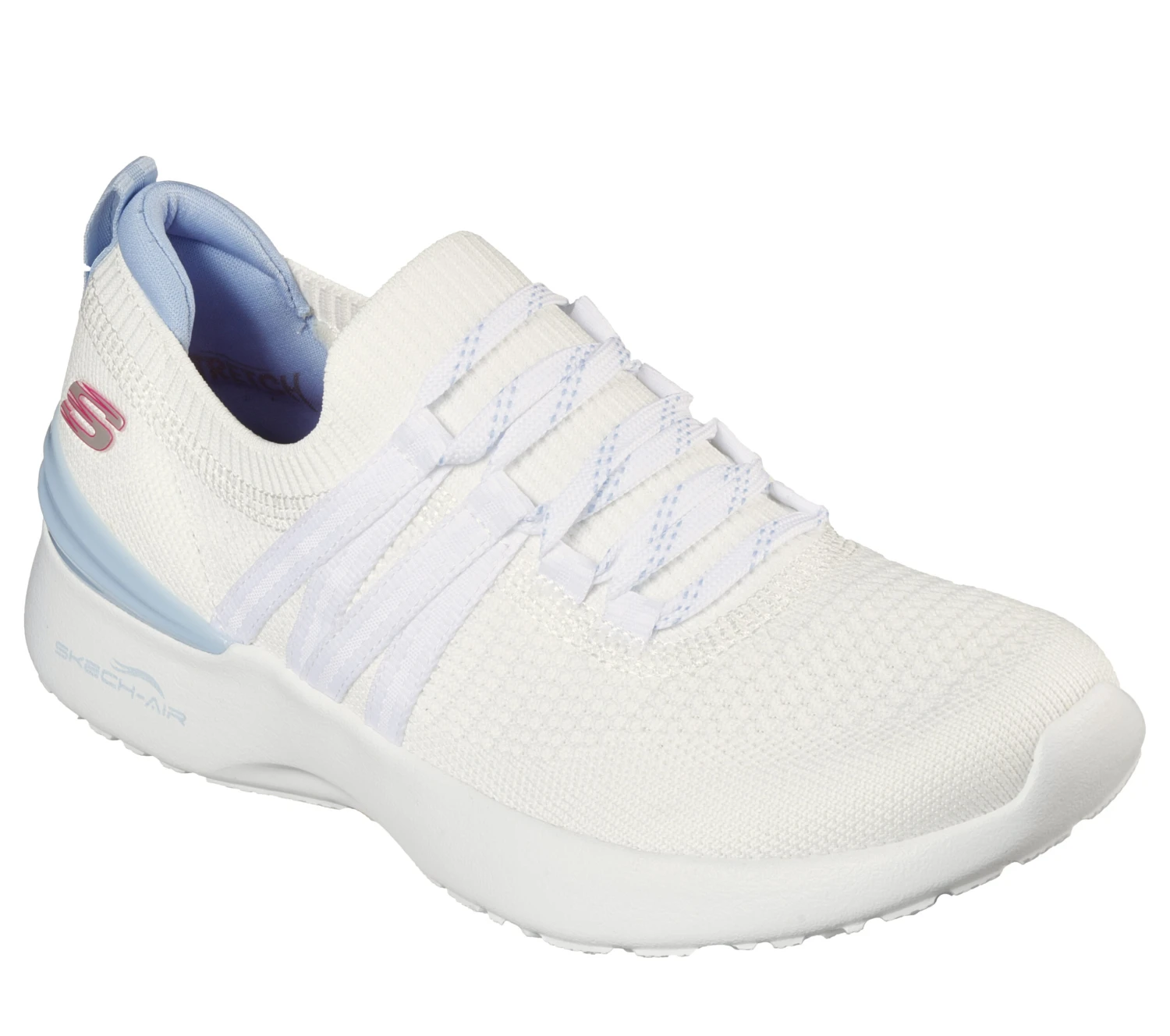 Take a walk in lightweight comfort wearing Skech-Air Dynamight – Bright Cheer. This slip-on features a Stretch Fit® engineered knit upper with adjustable laces, Skechers Memory Foam insole and a Skech-Air® air-cushioned midsole.