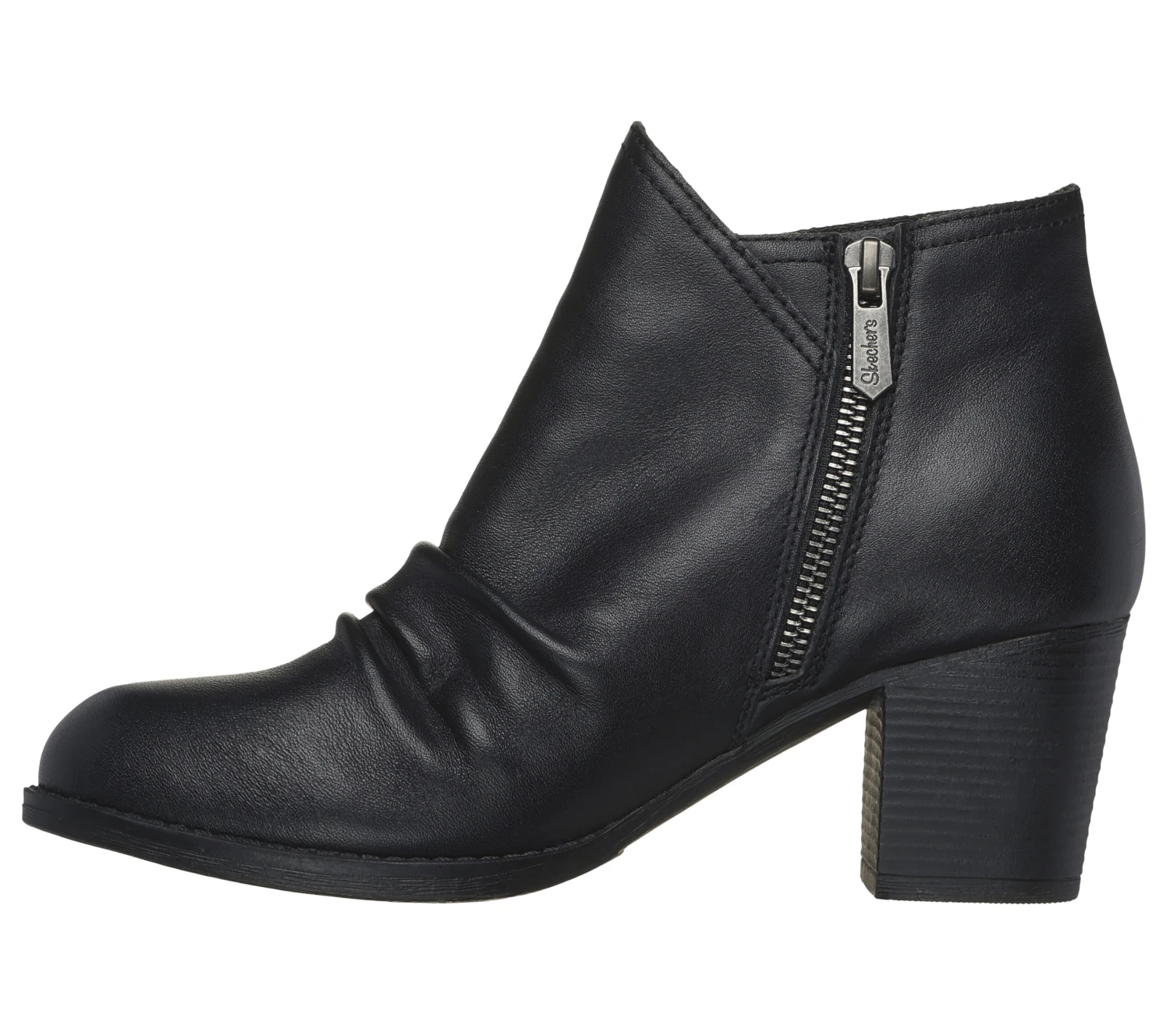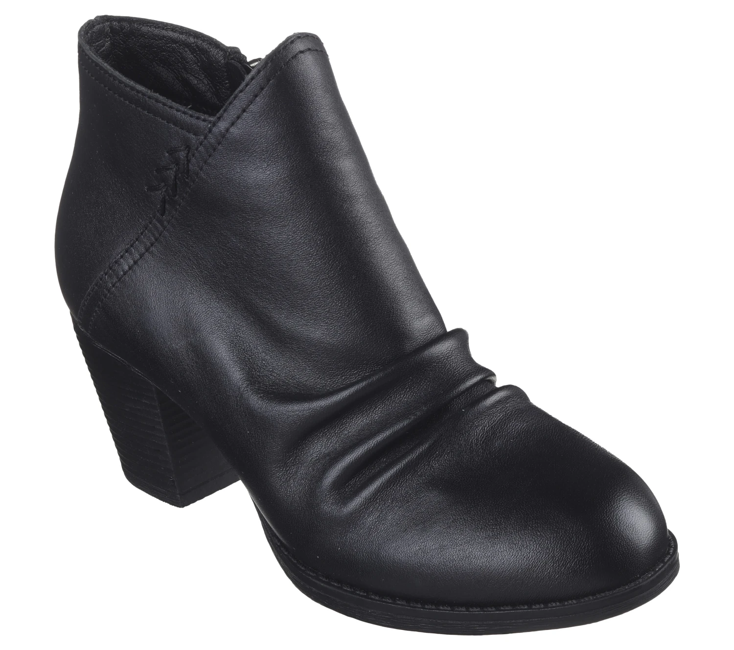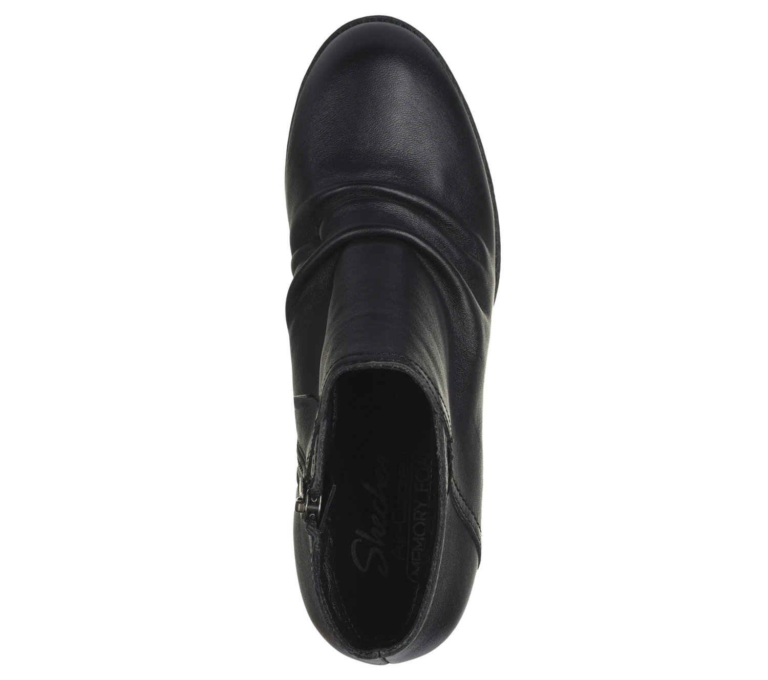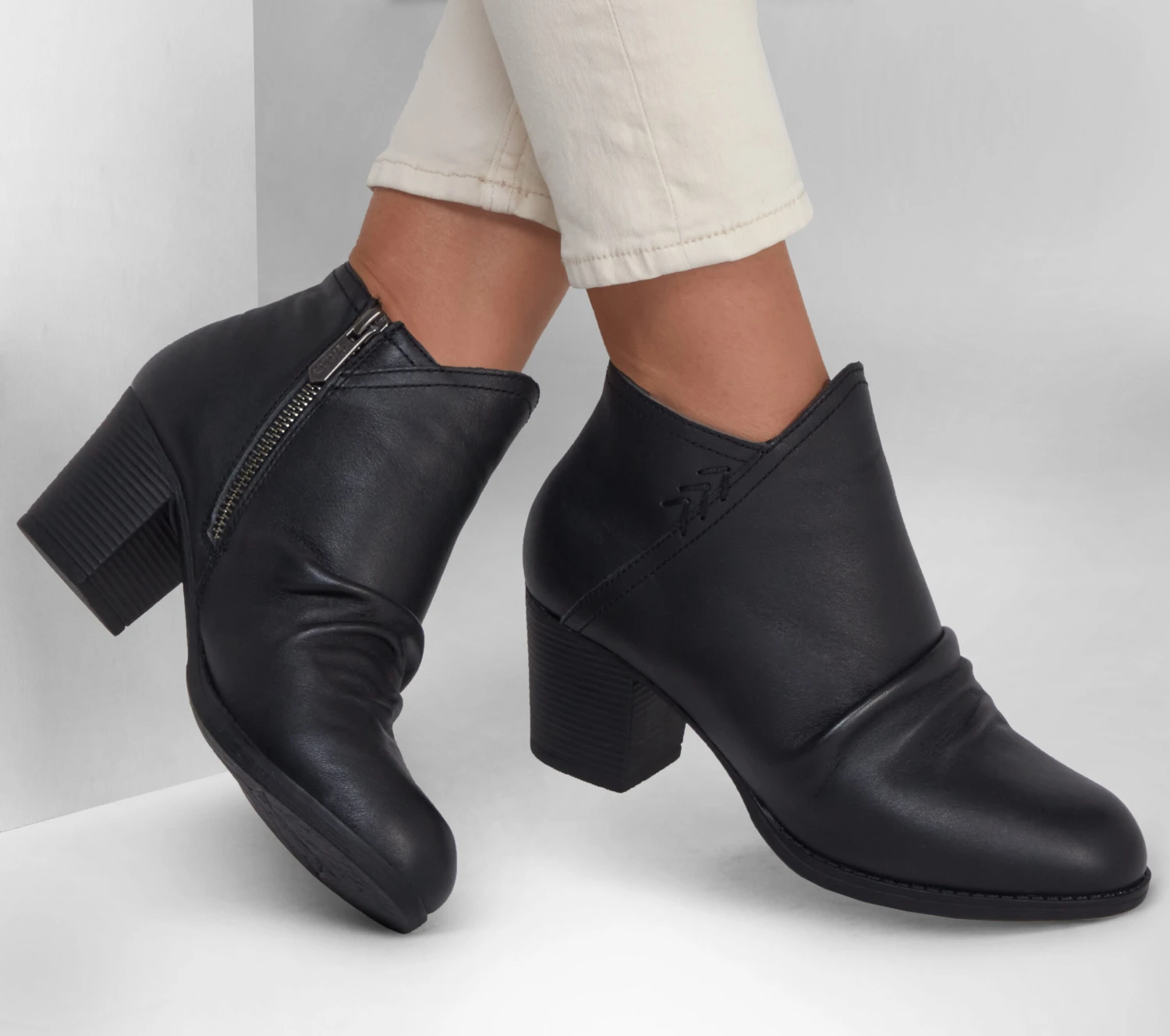Find chic tailored style in your new favorite fashion go-to with Skechers Taxi – Western Date. This casual heeled bootie features a smooth leather upper and inside zipper with a Skechers Air-Cooled Memory Foam® comfort insole.