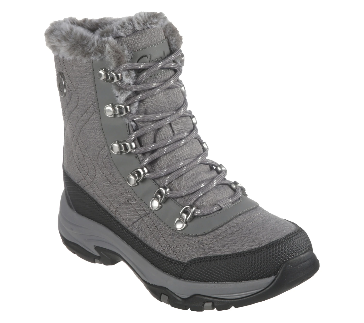- Synthetic and mesh upper with a faux-fur lined trim