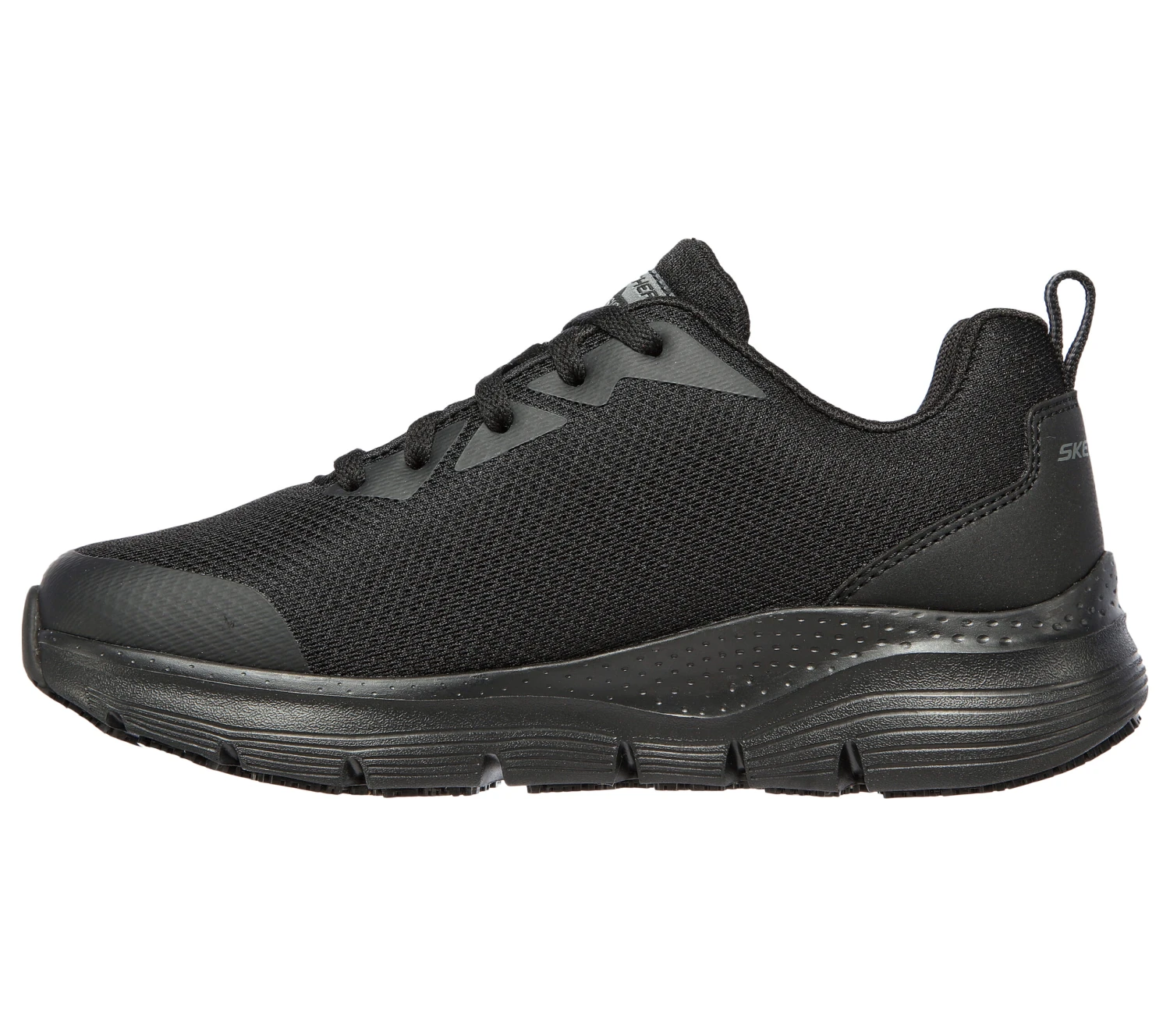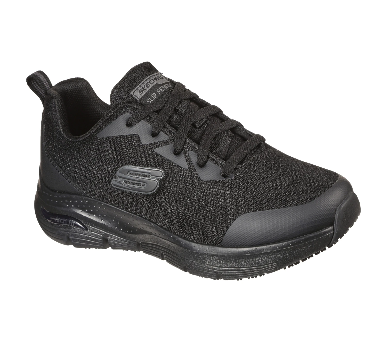 Skechers Work: Arch Fit® SR offers all-day comfort and support with safety you can depend on. This slip-resistant design features a lace-up front in a durable mesh knit and synthetic upper, an Arch Fit® removable cushioned insole and lightweight flexible midsole.